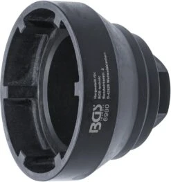 BGS 6990 Schlüssel für Nutmuttern Zapfen innen liegend für MAN 133-145mm Beschreibung: zur Anwendung an TGA Vorderachse (V982l-01) mit 6 Zapfen ausgelegt für hohe Anzugs- und Lösedrehmomente Technische Daten: Abtriebsprofil: Spezialprofil Antriebsprofil 1: Außensechskant Antriebsprofil 2: Innenvierkant Antriebsprofilgröße 1, imperial: 3/4" Antriebsprofilgröße 1, metrisch: 20mm Antriebsprofilgröße 2, metrisch: 60mm Außendurchmesser: 147,5mm Bruttogewicht: 3762g Länge: 110mm