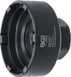 BGS 6992 Schlüssel für Antriebswellen-Nutmuttern für MAN & Mercedes LKW`s 101,5mm x 110mm Beschreibung: Werkzeug zum Lösen und Anziehen der Nutmuttern an MAN u. Mercedes-Benz Antriebswellen für Hand- und Schlagschrauberbetrieb geeignet ausgelegt für hohe Anzugs- und Lösedrehmomente Abtriebsprofil: 6 Zähne Zahnbreite: 11,5mm Technische Daten: Antriebsprofil: Innenvierkant Antriebsprofilgröße, imperial: 3/4" Antriebsprofilgröße, metrisch: 20mm Außendurchmesser: 110mm Bruttogewicht: 3084g Innendurchmesser: 101,5mm Länge: 60mm Schlüsselweite: 101,5 x 110mm