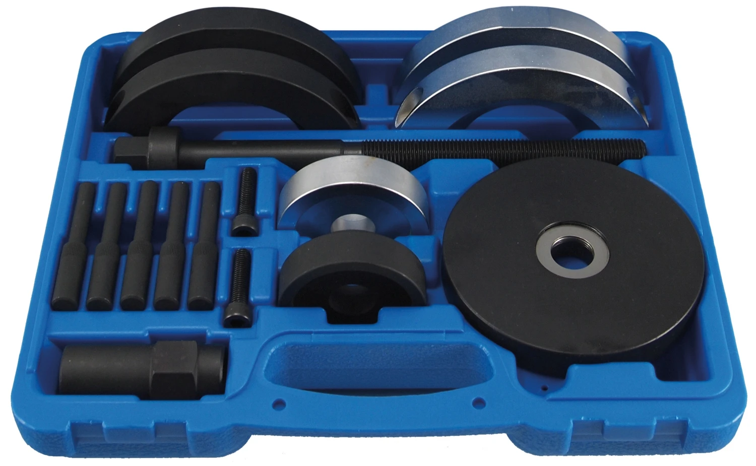 BGS 8270 Radlagerwerkzeug für Radlager Nabeneinheit für VW 72mm Beschreibung Das Werkzeug erleichtert die Montage und Demontage der Radlager-Nabeneinheit hochfeste, kugelgelagerte Spindel Druckplatte mit 8 Nebenbohrungen 5 Druckstifte 1 geteilte Demontageschale 1 Demontage-Druckscheibe 1 geteilte Montageschale 1 Montage-Druckscheibe passend für folgende Modelle: Audi A2 Skoda Fabia ab Baujahr 2000 VW Polo, Fox ab Baujahr 2005 Seat Ibiza ab Baujahr 2002