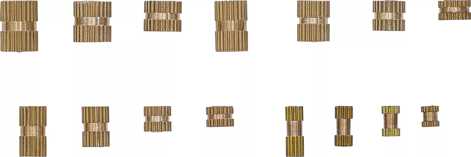 BGS 85223 Sortiment Einpressmuttern Messing 330 teilig Beschreibung: für die Montage in konischen Löchern lassen sich in ein Sack- oder Durchgangsloch leicht einbetten können unter Anwendung von Wärme oder Ultraschall nachträglich in Kunststoffverbindungen, Spritzguss oder 3D-Druckerzeugnisse eingesetzt werden verbaut in Notebooks, elektrischen Geräten, Spielzeugen, Motorrädern und verschiedenen Kunststoffschalen metrisches Innengewinde hochwertiges Messingmaterial, hitzebeständig gerade Rändelfläche für Passgenauigkeit im Montageobjekt hohe Härte für lange Nutzungsdauer im praktischen Sortimentskasten Lieferumfang: 30 x Einpressmuttern / Gewindeeinsätze, M2 x 0,4, Länge 4mm, Ø 3,5mm 30 x Einpressmuttern / Gewindeeinsätze, M2 x 0,4, Länge 6mm, Ø 3,5mm 30 x Einpressmuttern / Gewindeeinsätze, M2 x 0,4, Länge 8mm, Ø 3,5mm 20 x Einpressmuttern / Gewindeeinsätze, M2 x 0,4, Länge 10mm, Ø 3,5mm 30 x Einpressmuttern / Gewindeeinsätze, M2 x 0,5, Länge 4mm, Ø 5mm 30 x Einpressmuttern / Gewindeeinsätze, M2 x 0,5, Länge 6mm, Ø 5mm 20 x Einpressmuttern / Gewindeeinsätze, M2 x 0,5, Länge 8mm, Ø 5mm 20 x Einpressmuttern / Gewindeeinsätze, M2 x 0,5, Länge 10mm, Ø 5mm 30 x Einpressmuttern / Gewindeeinsätze, M2 x 0,7, Länge 4mm, Ø 6mm 20 x Einpressmuttern / Gewindeeinsätze, M2 x 0,7, Länge 6mm, Ø 6mm 20 x Einpressmuttern / Gewindeeinsätze, M2 x 0,7, Länge 8mm, Ø 6mm 15 x Einpressmuttern / Gewindeeinsätze, M2 x 0,7, Länge 10mm, Ø 6mm 15 x Einpressmuttern / Gewindeeinsätze, M2 x 0,8, Länge 6mm, Ø 7mm 10 x Einpressmuttern / Gewindeeinsätze, M2 x 0,8, Länge 8mm, Ø 7mm 10 x Einpressmuttern / Gewindeeinsätze, M2 x 0,8, Länge 10mm, Ø 7mm