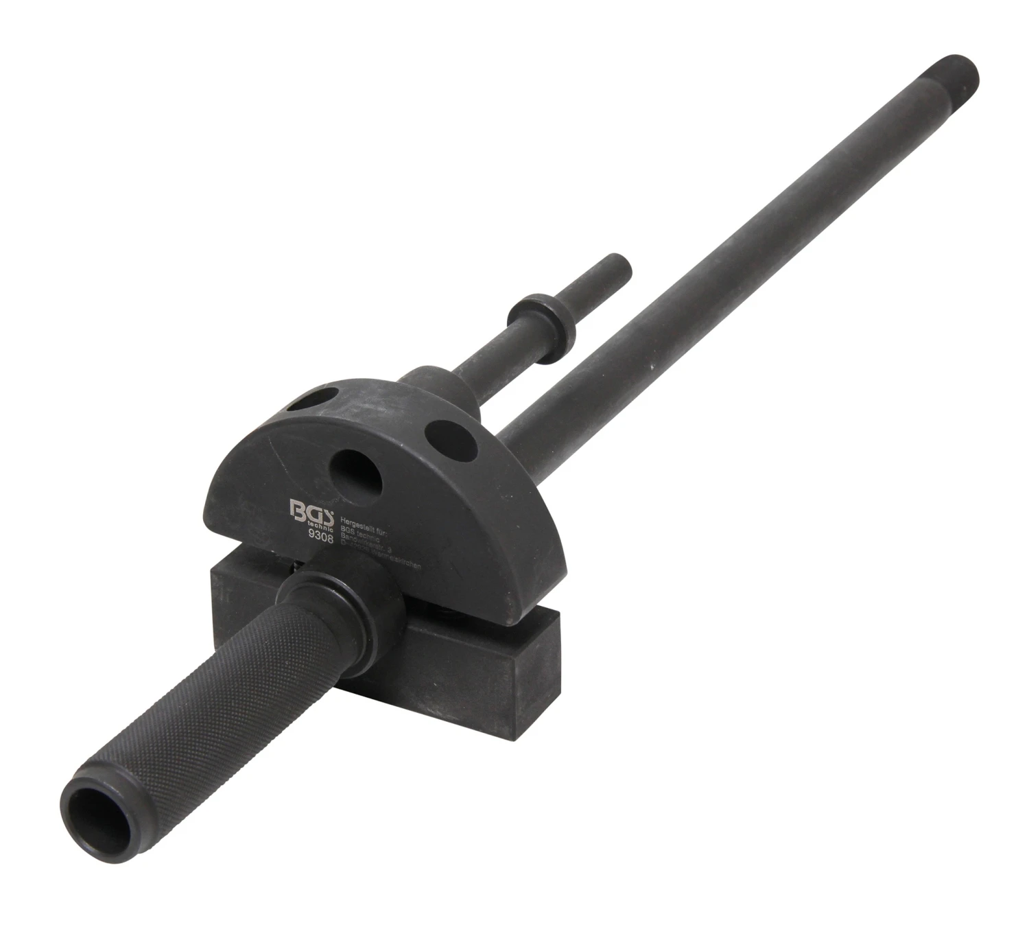 BGS 9308 Werkzeug zur Demontage festsitzender Injektoren zur Verwendung mit Drucklufthammer Beschreibung: zur Demontage festsitzender Injektoren Spezialkonstruktion mit Zugstange und Schiebeklemme zum Herausziehen von Injektoren mittels Drucklufthammer geeignet für Drucklufthammer Art. 3515, Injektor-Demontageklaue aus Art. 7777 und Einzelklaue 7777-1, 7777-2, 7777-3 Material: S45C / Cr-Mo Stahl Gesamtlänge: 510mm Grifflänge: 110mm
