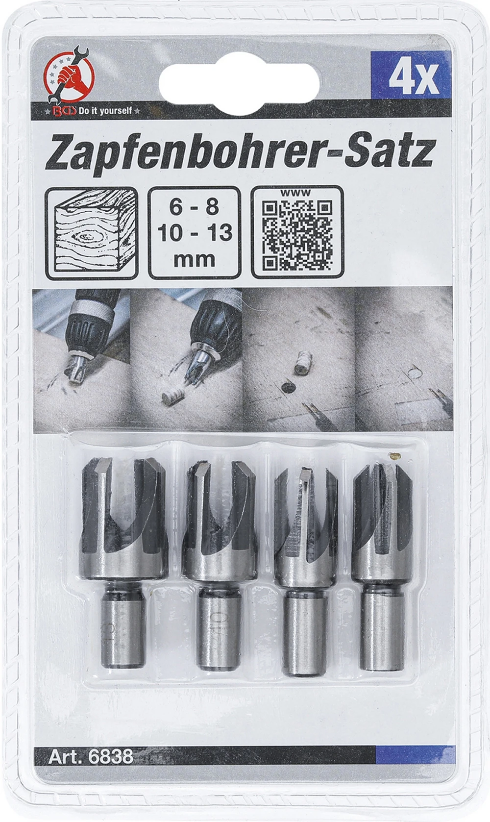 BGS DIY 6838 Satz Zapfenbohrer 6-8-10-13mm 4-teilig