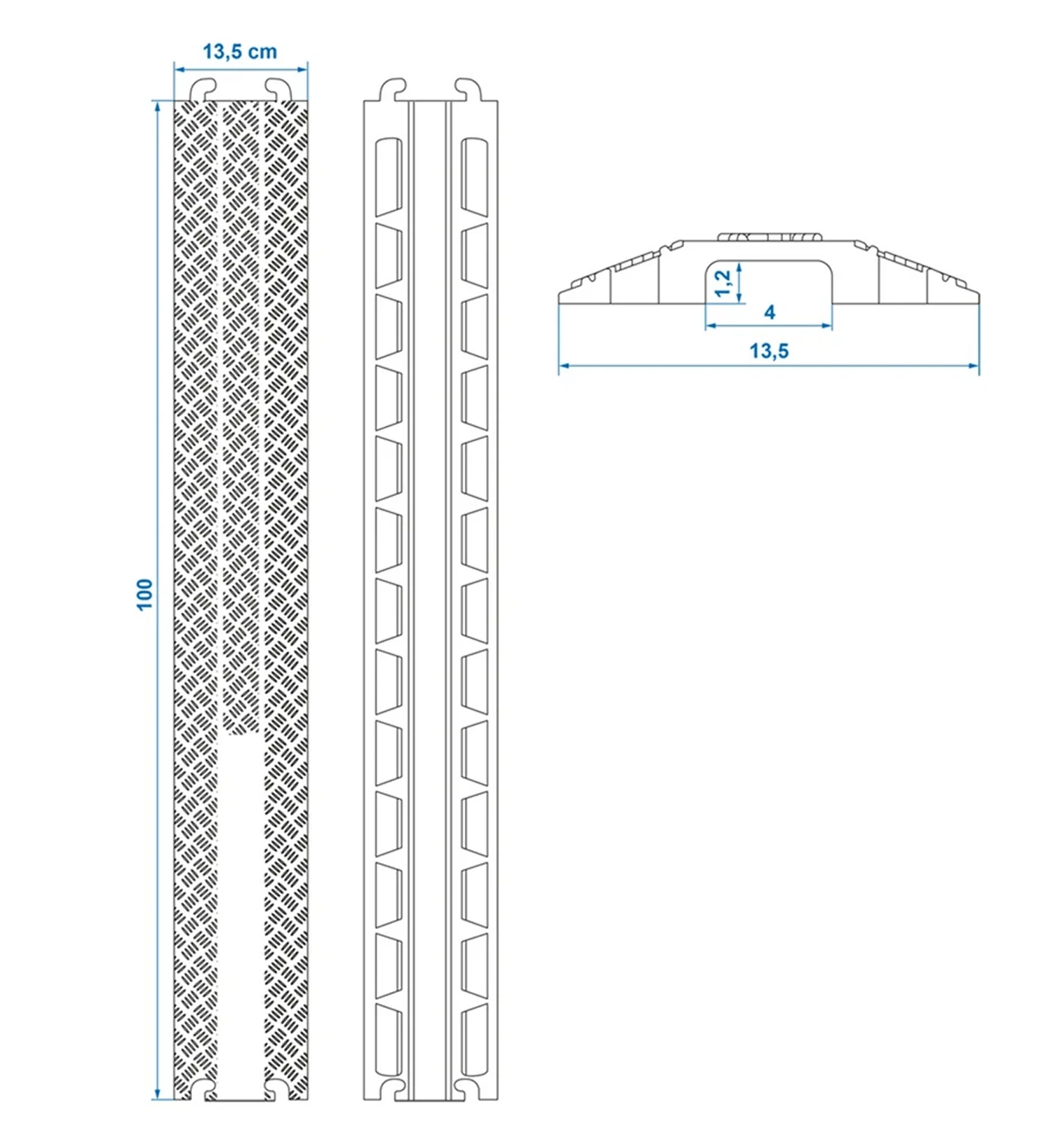 ProPlus 361571 Kabelbrücke zum Überfahren von Kabeln Länge 1 Meter Beschreibung stabile Überfahrhilfe zum Überfahren von Kabeln zum Schutz von Verlängerungskabeln auf einem Parkplatz, Hof, Baustelle, Garage, Campingplatz etc. einfach über das Kabel zu verlegen es können auch mehrere Kabelbrücken miteinander verbunden werden durch das flexible Material (TPR), gleich diese Kabelbrücke auch Unebenheiten aus es können auch mehrere Kabel bis 4cm Breite nebeneinander unter die Kabelbrücke gelegt werden Technische Angaben: Abmessungen: 100 x 13,5 cm Tunnelhöhe: 12mm max. Belastung: 10 Tonnen Material: flexibler thermoplastischer Gummi (TPR) Länge: 1 Meter