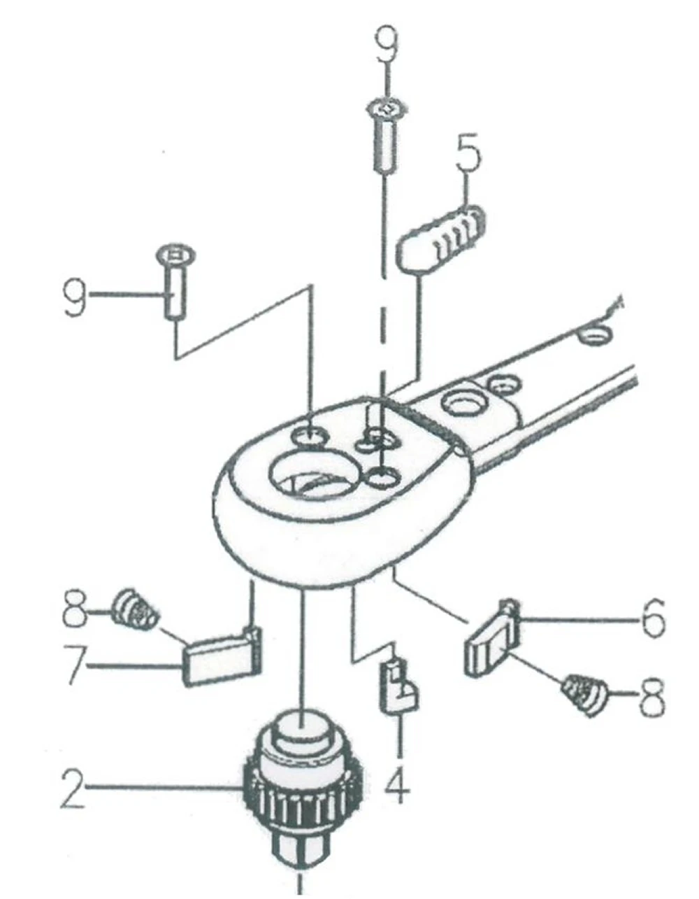 PROXXON 23351-102A Reparatur Satz zu Drehmomentschlüssel MC100 Beschreibung: Reparatursatz für den PROXXON 23351 Drehmomentschlüssel MC100 ab Baujahr 2010 eingeschräkt auch für PROXXON 23351 Drehmomentschlüssek 100S* enthält alle Verschleißteile, die im Kopf des Drehmomentschlüssels verbaut sind Lieferumfang: 1 x Treibrad mit Auswurfknopf mit Vierkant 10mm (3/8") (2) 2 x Schrauben (9) 1 x Hebel Rechts/ Linksumstellung (5) 1 x Umwerfer (4) 2 x Sperrklinke (6) + (7) 2 x Feder (8) HINWEIS: nur als Satz lieferbar wir können keine einzelnen Teile aus dem Satz liefern *Anmerkung zu PROXXON 23351 Drehmomentschlüssel 100/s der Reparatur Satz kann auch für den PROXXON Drehmomentschlüssel 100/s (vor Baujahr 2010) verwendet werde, aber dann muss der durchsteckbare Vierkant gegen das Treibrad mit Auswurfknopf (aus der Serie MC100) getauscht werden oder es werden nur die Verschleißteile wie Sperrklinken und Federn getauscht