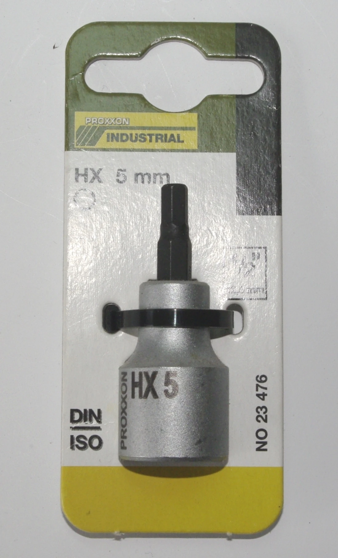 PROXXON 23476 Innensechskant Einsatz 5mm, Länge 55 mm, Antrieb 12,5mm (1/2") PROXXON Nummer 23 476 Beschreibung: Größe: HX5 5mm Länge: 55mm Antrieb 12,5mm (1/2") Material Sockel: CrV-Stahl 31 CrV3 Klinge aus Chrom-Silicium-Mangan-Molybdän-Stahl geschmiedet Optimaler Oberflächenschutz: 2 x vernickelt und 1 x verchromt