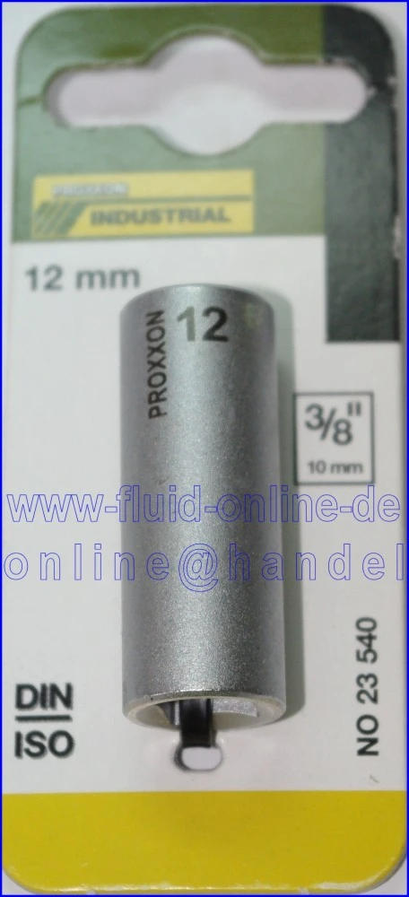 PROXXON Nr. 23540 Tiefbett Steckschlüsseleinsatz 12mm Antrieb 10mm (3/8") PROXXON Nummer 23 540 Beschreibung: Steckschlüsselgröße: 12 mm Antrieb: 10mm (3/8") Innenvierkant lange Ausführung (Tiefbett) Nutzbare Tiefe: 19mm für lang überstehende Gewindebolzen geeignet Material: CrV-Stahl 31 CrV3 geschmiedet Optimaler Oberflächenschutz: 2 x vernickelt und 1 x verchromt alle Steckschlüssel von PROXXON sind mit dem Driver System ausgestattet, bei dem der Antrieb nicht über die Ecken sondern über die Flanken erfolgt. Für hohe Kraftübertragung; Kanten und Muttern bleiben unberührt