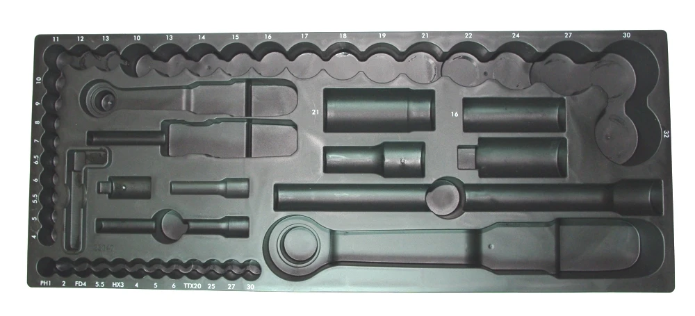 PROXXON Einlage leer für Satz 23040 Beschreibung: original Werkzeugeinlage von PROXXON mit Beschriftung Material Kunststoff als Ersatz ohne Werkzeuge Lieferung wie abgebildet kann auch als Einlage für einen Werkstattwagen, Schublade verwendet werden Abmaß: Abmaß der Einlage: Länge 435mm x Tiefe 175mm x Höhe 35mm Kann verwendet werden für folgende PROXXON Steckschlüsselkasten: PROXXON 23040 Steckschlüssel Satz 56teilig mit 6,3mm (1/4') und 12,5mm (1/2') Ratsche HINWEIS: wir liefern die neuste Version der Einlage zur Aufnahme der Knarren / Ratschen PROXXON 23092 und PROXXON 23096 in der aktuellen Bauform aus die Bauform der Knarren hat sich im Laufe der Jahre geändert ätere Knarren / Ratschen passen nicht in diese Einlage die einzige Lösung ist in diesen Fällen der Austausch der beiden Knarren PROXXON 23092 und 23096 gegen die aktuellen Versionen ferner können sich die Bestückung im Laufe der Jahre geändert haben, auch hier hilft nur ein Austausch / Ergänzung der Werkzeuge PASSEND DAZU: PROXXON 2316 Metallkoffer Leerkoffer Metallkasten leer 445x185x50mm