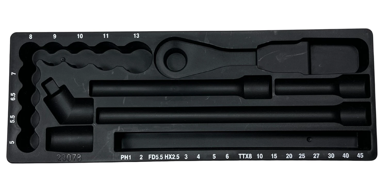 PROXXON Einlage leer für Satz 23078 Beschreibung: original Werkzeugeinlage von PROXXON mit Beschriftung Material Kunststoff als Ersatz ohne Werkzeuge Lieferung wie abgebildet kann auch als Einlage für einen Werkstattwagen, Schublade verwendet werden Abmaß: Einlage: Länge 219mm x Tiefe 79mm x Höhe 29mm Kann verwendet werden für folgende PROXXON Steckschlüsselkasten: PROXXON 23078 Feinmechaniker Steckschlüssel- und Schraubersatz 6,3mm (1/4") 32 teilig HINWEIS – bitte beachten: im Laufe der Jahre hat sich die Form Handgriffe der Knarren / Ratschen geändert. Die hier angebotene Einlage ist nur für die Ratsche PROXXON 23160 in der momentan aktuellen Ausführung verwendbar Ältere Ratschen können nicht in diese Einlage eingelegt werden Ggf. müssen Sie neue Ratschen kaufen Optional passender Kunststoffkoffer: PROXXON Metallkoffer Leerkoffer 3 KLEIN LEER – klick hier zum Artikel