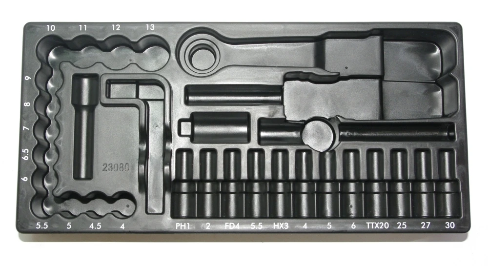PROXXON Einlage leer für Satz 23080 Beschreibung: original Werkzeugeinlage von PROXXON mit Beschriftung Material Kunststoff als Ersatz ohne Werkzeuge Lieferung wie abgebildet kann auch als Einlage für einen Werkstattwagen, Schublade verwendet werden Abmaß: Einlage: Länge 235mm x Tiefe 115mm x Höhe 30mm Kann verwendet werden für folgende PROXXON Steckschlüsselkasten: PROXXON 23080 Feinmechaniker Steckschlüsselsatz / Knarrenkasten 6,3mm (1/4") HINWEIS – bitte beachten: im Laufe der Jahre hat sich die Form Handgriffe der Knarren / Ratschen geändert. Die hier angebotene Einlage ist nur für die Ratsche PROXXON 23092 in der momentan aktuellen Ausführung verwendbar Ältere Ratschen können nicht in diese Einlage eingelegt werden Ggf. müssen Sie neue Ratschen kaufen Optional passender Kunststoffkoffer: PROXXON Metallkoffer Leerkoffer 3 KLEIN LEER – klick hier zum Artikel