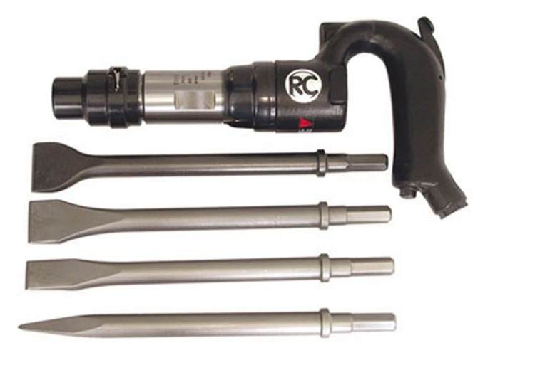 RODCRAFT Meißelhammer – Set RC5310 Modell 8951071053 Beschreibung: Meißelhammer für Metall-, Stein- und Betonarbeiten ausgerüstet mit Stahl-Meißelhalter RC 76-3 und zusätzlicher Federsicherung RC 79 austauschbare Zylinderbuchse Schlagzahl: 3000 1/min Lieferumfang: 1 x RODCRAFT 5305 Meißelhammer 12mm Sechskant Aufnahme – 8951071065 1 x RODCRAFT Spitzmeißel (235 mm lang) – RC51S Nr. 8951011949 1 x RODCRAFT Flachmeißel (235 mm lang x 20 mm breit) – RC52S Nr. 8951011950 1 x RODCRAFT Flachmeißel (235 mm lang x 30 mm breit) – RC53S Nr. 8951011951 1 x RODCRAFT Flachmeißel (235 mm lang x 40 mm breit) – RC54S Nr. 8951011952 1 x Werkzeugkoffer Technische Daten: Meißelaufnahme 12.0 mm Sechskant Schlagkraft: 6 Joule Hub 50 mm Schlagzahl 3000 Schläge/min Gewicht 5,2 kg Schlauchdurchmesser 8 mm max. Druck 6.3 bar Luftverbrauch durchschn. 260 l/min Luftverbrauch kontin. 380 l/min Luftanschluss 1/4 Zoll IG Geräusch LpA 98.8 dB(A) Vibration 5.5 m/s² Klassifizierung 3 – sehr hohe Ansprüche