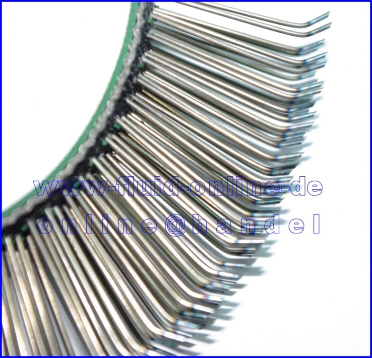 RODCRAFT BU020-5 Bürstenband 11mm breit grob schwarz für MBX System Modell: 8951011664 Beschreibung: Ersatzbürsten für das MBX System gewinkelt, geschliffen. spitzengehärtet Sandstrahleffekt Bürsten Drahtdurchmesser 0,7mm Federstahl kann mehrfach nachgeschliffen werden – dazu RODCRAFT ZU003 Schleifstein zum Nachschleifen für MBX System Modellnummer: 8951011651 mitbestellen Anwendung: Entfernen von Unterbodenschutz und Dichtmassen, Entlackung Besonders geeignet in Schweißnaht-, Konturen- und Kantenblechbereichen mit Sandstrahleffekt Technische Angaben: Ausführung: grob, schwarz Breite: 11mm Bestellhinweis: Bestellmenge 1 = Packung mit 5 Bürsten Geeignet für: RODCRAFT 7091 MBX System