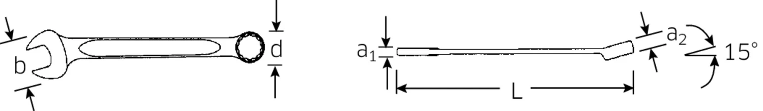 STAHLWILLE 1/2" Ring-Maulschlüssel 130a Stahlwille Code 40573232 Beschreibung: Fed. Spec. GGG-W-636 E HPQ®-Hochleistungsstahl verchromt Technische Daten: Code 40573232 Schlüsselweite " 1/2 L mm 150 b mm 27 d mm 18,2 a1 mm 6,5 a2 mm 8,5 Gewicht g 61