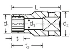 STAHLWILLE 12171 VDE 11mm Steckschlüsseleinsatz Antrieb 10mm (3/8") Stahlwille Code 02380011 Beschreibung: HPQ®-Hochleistungsstahl verchromt VDE isoliert bis 1000 V DIN EN 60900 Schutzisoliert nach IEC 900 – AC/1000 V AC/1000 V Doppelsechskant AS-drive Technische Daten: Code: 02380011 Schlüsselweite: 11mm Länge: 45mm d1: 20,6mm d2: 21,5mm d3: 10mm t1: 8,5mm t2: 13,7mm Abtriebsprofil: Doppelsechskant AS-drive Gewicht: 29g