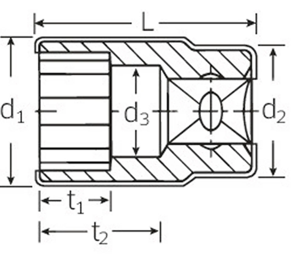 STAHLWILLE 12179 VDE 24mm Steckschlüsseleinsatz Antrieb 12,5mm (1/2") Stahlwille Code 03370024 Beschreibung: HPQ®-Hochleistungsstahl verchromt VDE isoliert bis 1000 V DIN EN 60900 Schutzisoliert nach IEC 900 – AC/1000 V AC/1000 V Doppelsechskant AS-drive Technische Daten: Code: 03370024 Schlüsselweite: 24mm Länge: 60mm d1: 37mm d2: 31mm d3: 21mm t1: 18,5mm t2: 24,9mm Antriebsvierkant innen (Zoll): Doppelsechskant AS-drive Gewicht: 130g