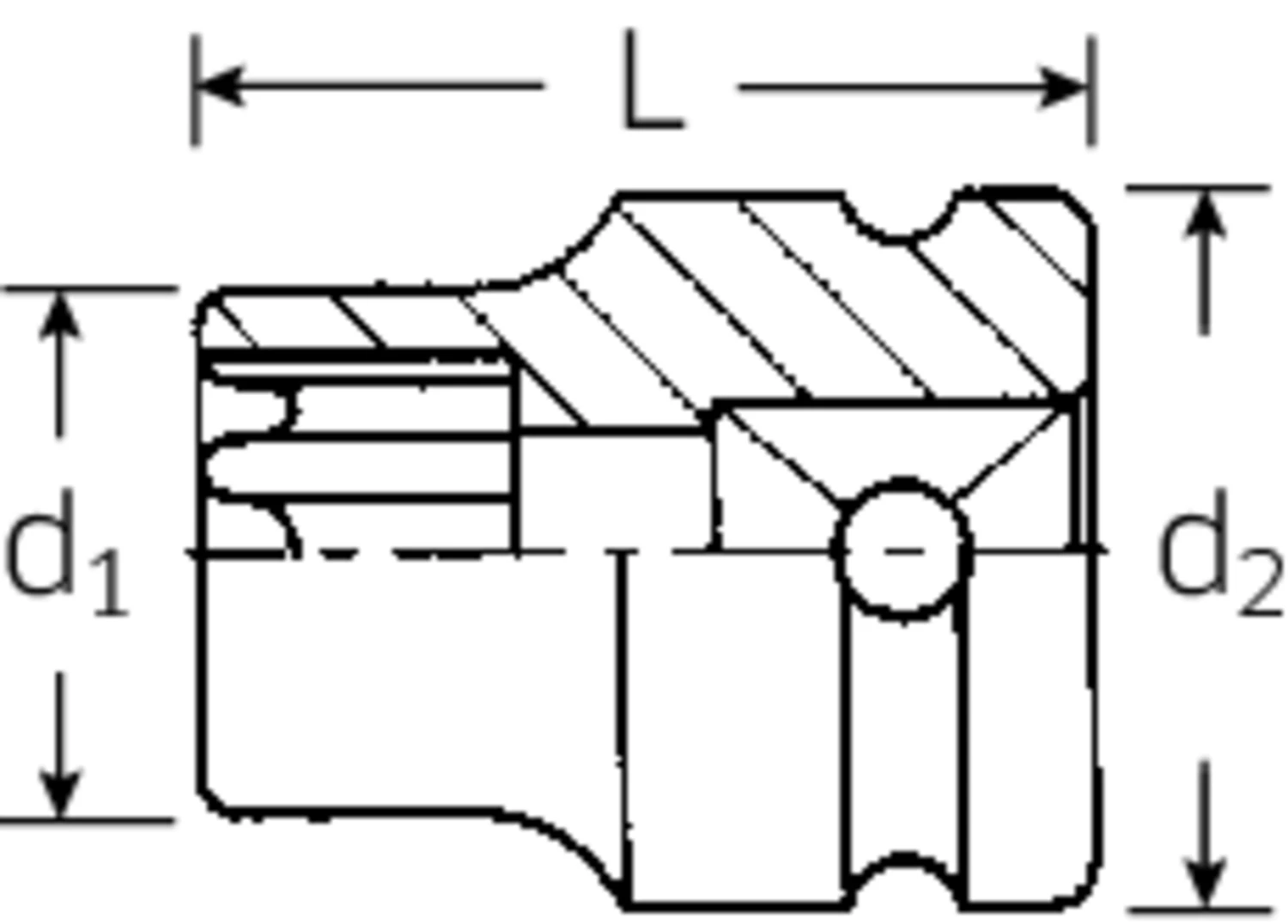 STAHLWILLE 2308TX TORX IMPACT Einsatz Nuss E24 Antrieb 12,5mm (1/2") Stahlwille Code 23080024 Beschreibung für Außen TORX-Schrauben zur Verwendung mit Kraftschrauber / Schlagschrauber geeignet Chrome-Alloy-Steel phosphatiert Antrieb: 12,5mm (1/2") Größe: E24 Technische Daten: Code 23080024 Gr. E24 TORX-Größe® mm 22,1 d1 mm 30 d2 mm 30 L mm 41,2 Gewicht g 149
