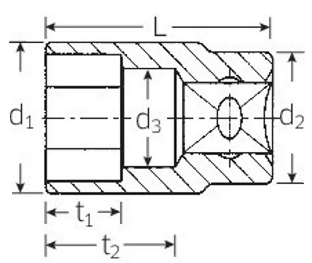 STAHLWILLE 456 Steckschlüsseleinsatz Schlüsselweite 14mm Antrieb 10mm (3/8") Stahlwille Code 02110014 Beschreibung: DIN 3124/ISO 2725-1, ASME B 107.5M, E DIN EN 3709 (Prüfwerte) HPQ®-Hochleistungsstahl verchromt Sechskant AS-drive Antriebsvierkant innen: 3/8" Technische Daten: Code 02110014 Schlüsselweite mm 14 d1 mm 19,4 d2 mm 17,5 d3 mm 13 L 30 t1 11,5 t2 15,8 Gewicht g 29