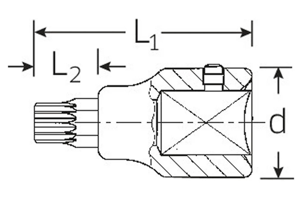 STAHLWILLE 59X M16 XZN Innenvielzahn Bit Antrieb 20mm (3/4") Stahlwille Code 05060016 Beschreibung für Innenvielzahnschrauben (XZN®) Chrome-Alloy-Steel verchromt Länge: 80mm Verwendungszweck: Schwungscheibe und Schwingungsdämpfer an Mercedes-Benz Nutzfahrzeugen Technische Daten: Code 05060016 Gr. M16 L1 mm 80 L2 mm 25 d mm 34,7 Gewicht g 302