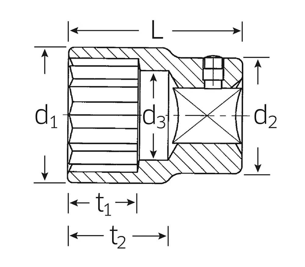 STAHLWILLE 60 Steckschlüsseleinsatz Nuss 46mm Antrieb 25mm (1") Stahlwille Code 06010046 Beschreibung DIN 3124/ISO 2725-1 AS-drive und HPQ®-Hochleistungsstahl bis SW 36 verchromt Technische Daten: Code 06010046 Schlüsselweite mm 46 d1 mm 61 d2 mm 48,5 d3 mm 40 L mm 75 t1 mm 32 t2 mm 43,5 Gewicht g 622
